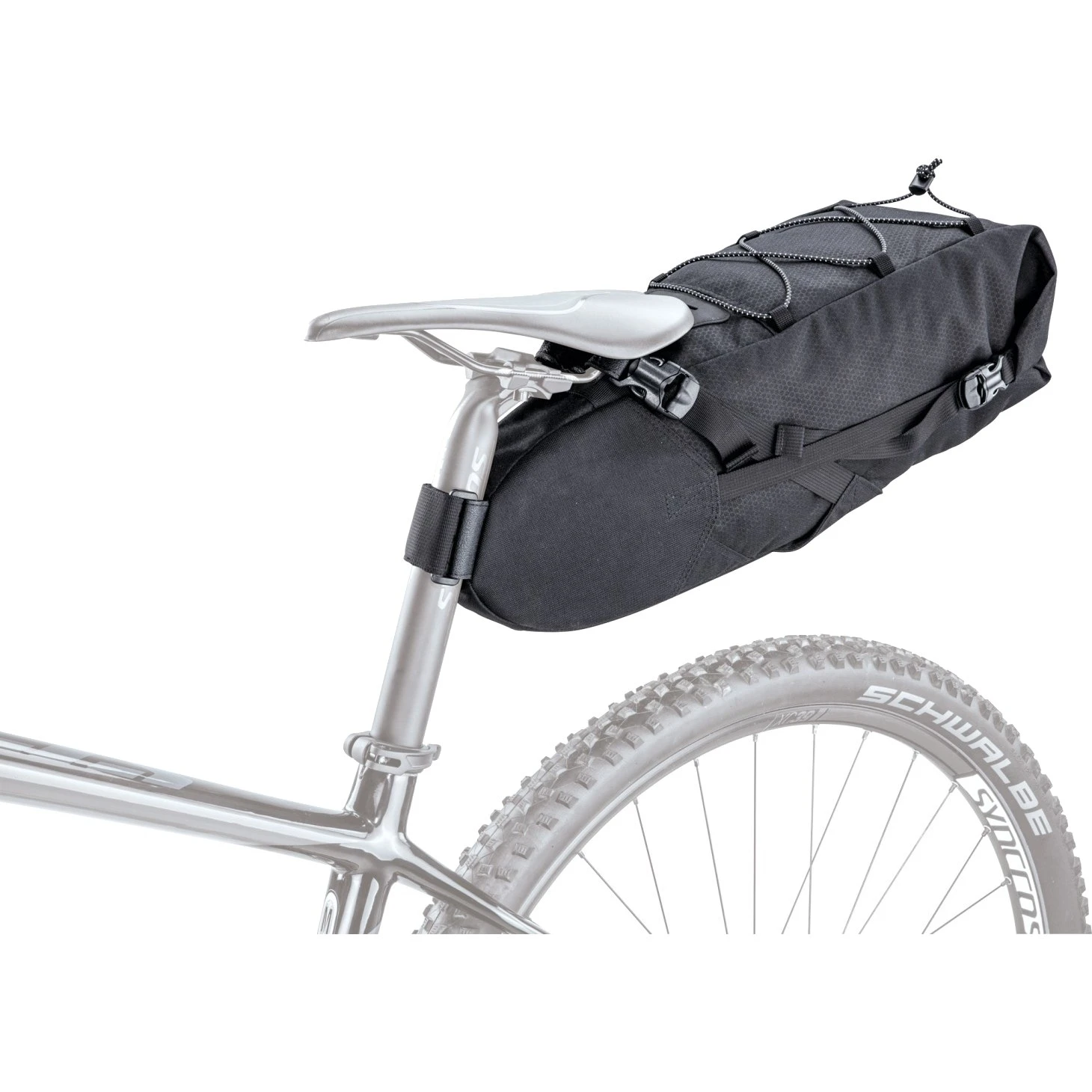 Pack and saddle up your equipment and ride the best trails. The BackLoader is a large-volume saddle bag for all those bike packers looking for a mobile and sleek alternative to luggage carriers. Available in 3 variants (6 L, 10 L and 15 L). Thanks to the ingenious mounting system and the compression straps the pendulum effect is reduced and the comfort noticeably. Light, highly water-repellent and robust materials protect the content in combination with a waterproof inner bag effectively against water and dirt.