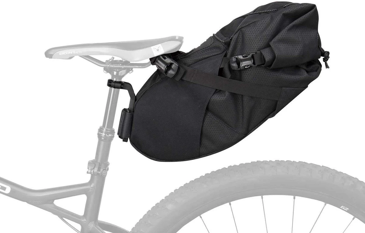 Solid aluminum dropper post mount to attach rear bikepacking bag, larger saddle bag, bottle cage, tail light, and more.
