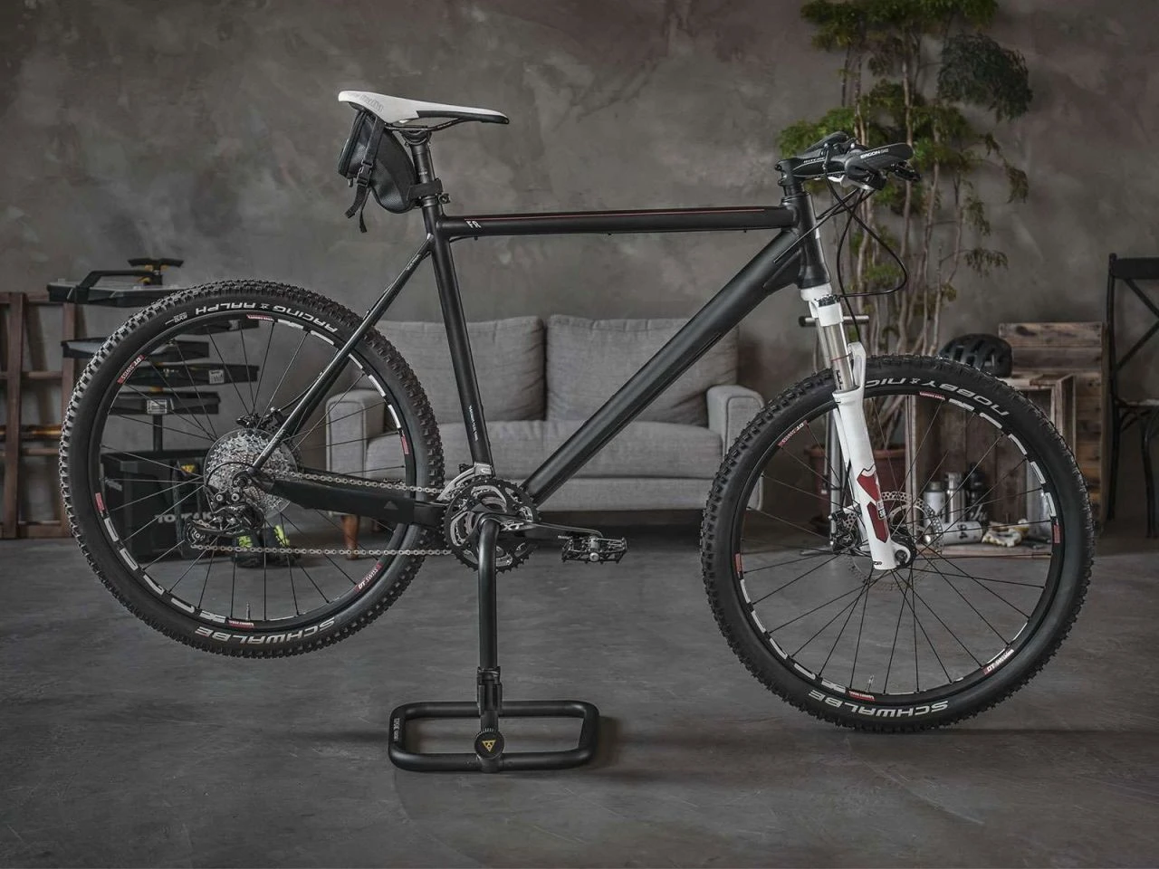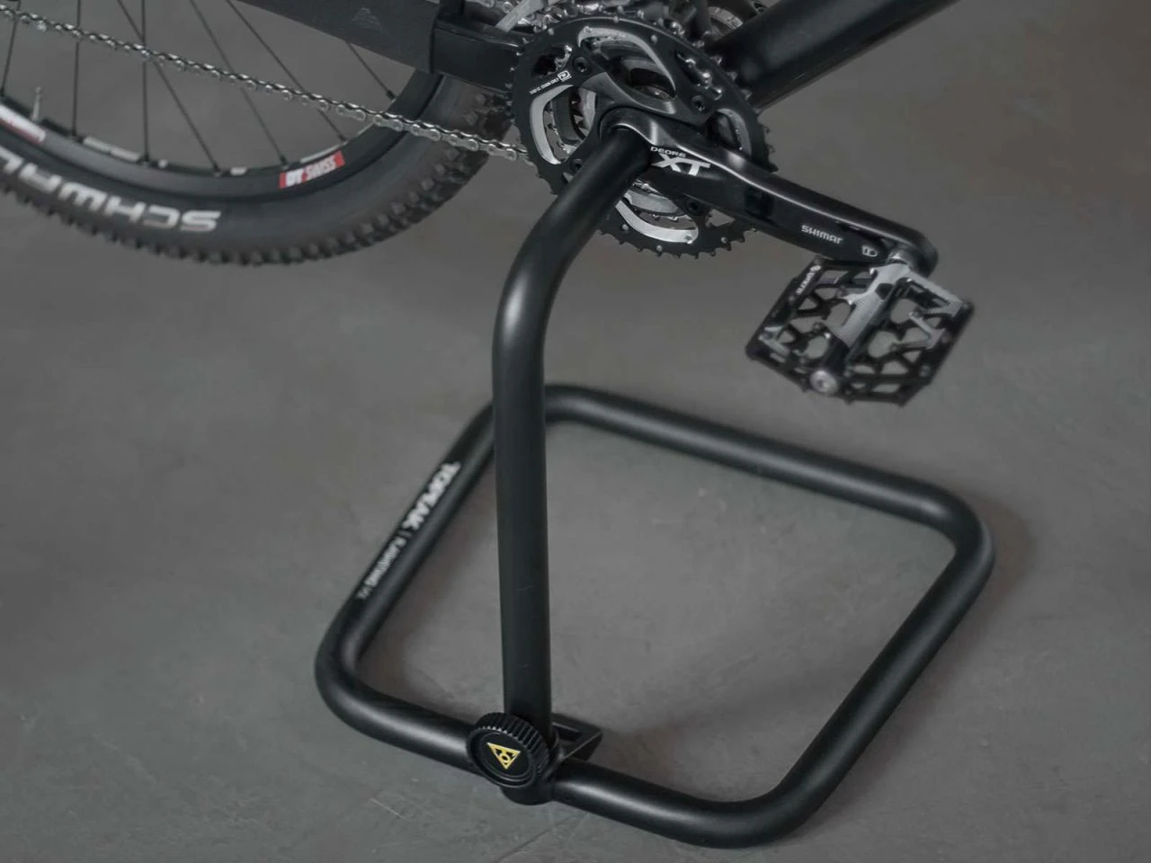 Designed for bikes with hollow spindle cranksets. Lift the rear wheel to mount bike on foldable tune-up stand in seconds for washing, display, storage and maintenance.