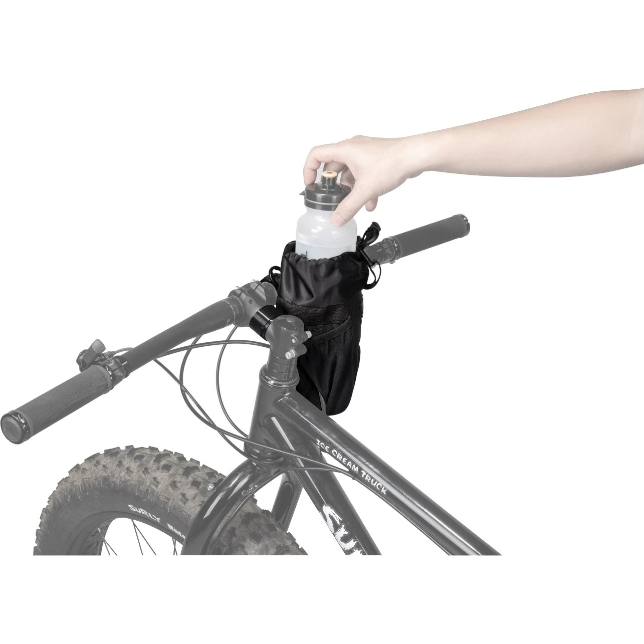 - Mounting: Hook and loop fasteners at handlebar / stem