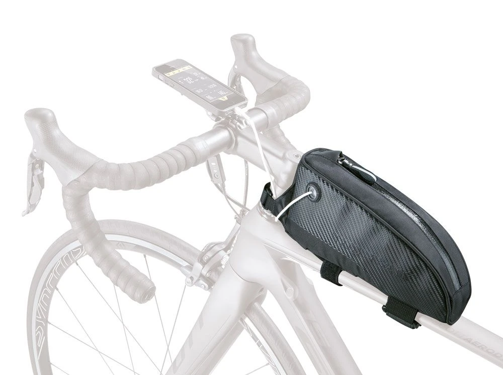 The Fuel Tank is a medium capacity top tube mounted bag giving a cyclist quick and easy access to energy bars, phone, wallet, tools or any small essential gear you need to keep close at hand while riding. The top opening, zipper accessed, main compartment keeps contents safe and secure