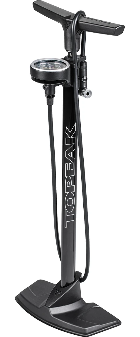 The aero-shaped barrel and wide steel base provide stability when pumping and the 3” top mounted gauge is easy to read up to 200 psi (14 bar). The large padded handle provides comfort while the extra-long and tangle-free hose can even reach wheels on bikes mounted in a stand. The SmartHead DX3 with lower-profile air-release button automatically adjusts to fit either Presta or Schrader valves and makes getting the right pressure a simple task.