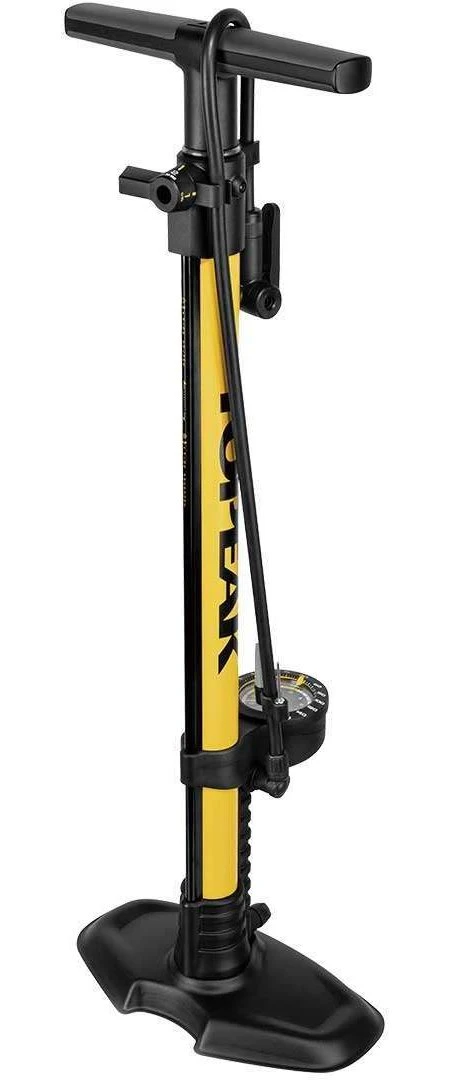 The JoeBlow Sport with unique 2-stage design delivers both high pressure and high volume in record time. Stage one opens both barrels for huge volume, reaching 30 psi with 30% less effort than standard floor pumps. Stage two utilizes the small barrel for pressures up to 160 psi. Hammer type TwinHead DX5 pump head with an extra-long and tangle-free hose makes it easy to reach valve stems. A durable steel barrel and large steel base provide extra stability.