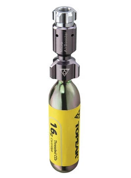 For riders that like to travel light and fast, Topeak’s Micro AirBooster CO2 Inflator is an ideal tool. The MicroBooster accepts all threaded cartridges and the head allows for Schrader and Presta valves.