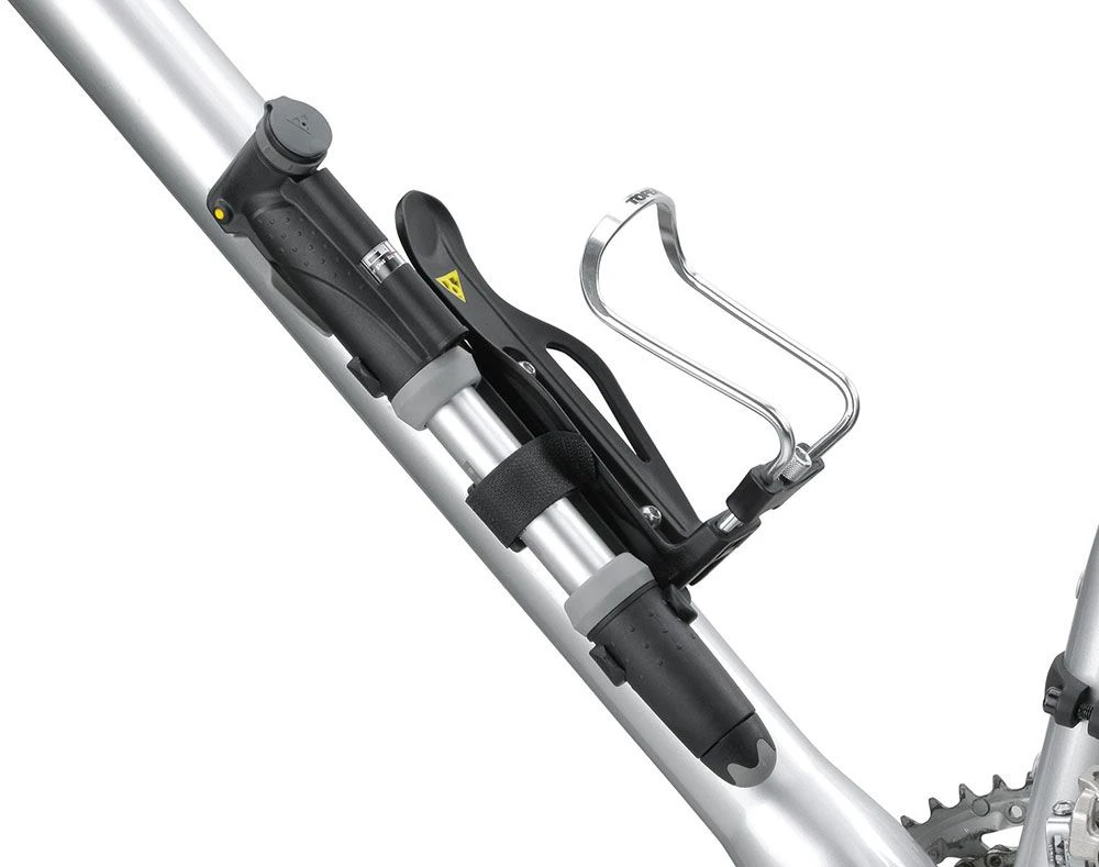 A powerful multi purpose dual action mini pump from Topeak includes an in-line guage.