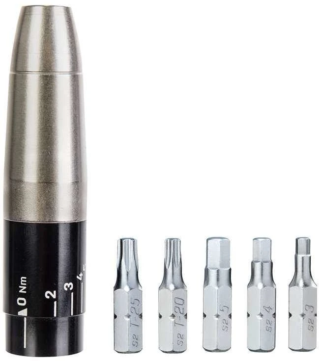 The most compact adjustable torque socket available. Works with a 5mm Allen wrench or any mini-tool with a 5mm Allen key to provide correct tightening of frame and component bolts to recommended torque values for safety and performance.