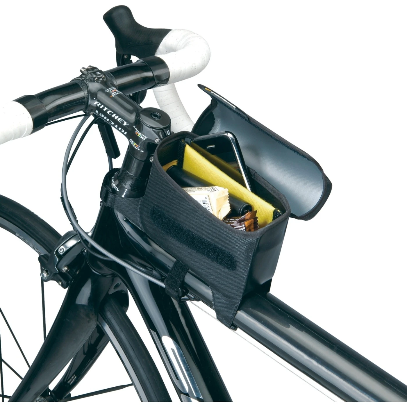 The Tri DryBag quickly mounts to the top tube of your bike for quick and easy access to energy bars or any small essential gear you need to keep close at hand. A padded and waterproof main compartment keeps contents dry, safe and secure.