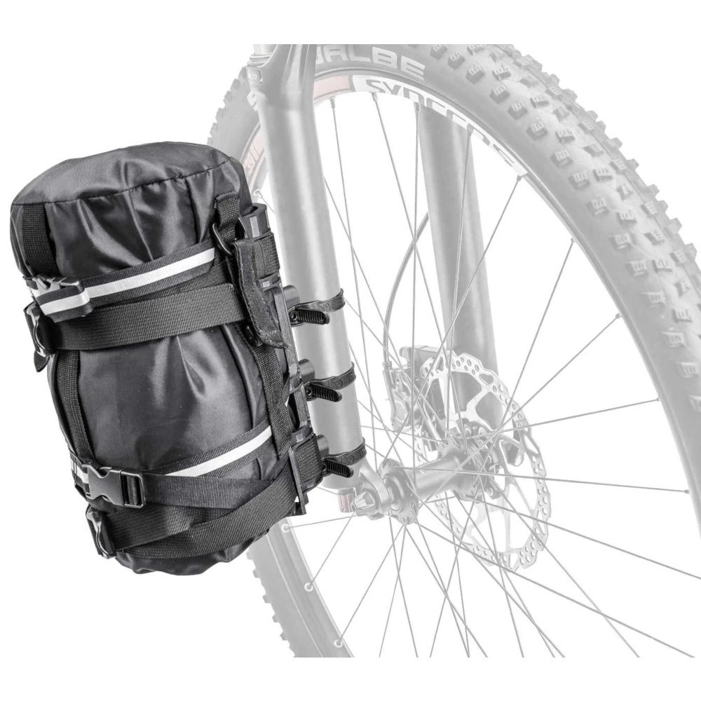 Expand your adventures with the VersaCage by attaching more luggage to your bike. Because with the included VersaMount clamps and pack straps can be almost any round luggage, such as packs or sleeping bags, attach to many places of the frame or fork. For optimal positioning and weight distribution of the luggage at all times, the VersaCage is equipped with four mounting eyes. The VersaMount clamps are compatible with Ø 20 – 60 mm frame tubes.