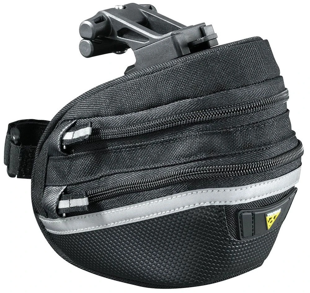 Wedge Pack II stands for Topeak’s aerodynamic bicycle saddlebag. Mounts and removes quickly with the innovative QuickClickâ„¢ system. Features durable 1000 denier, wrap around zipper and extra long 3Mâ„¢ reflective strip for added safety at night.